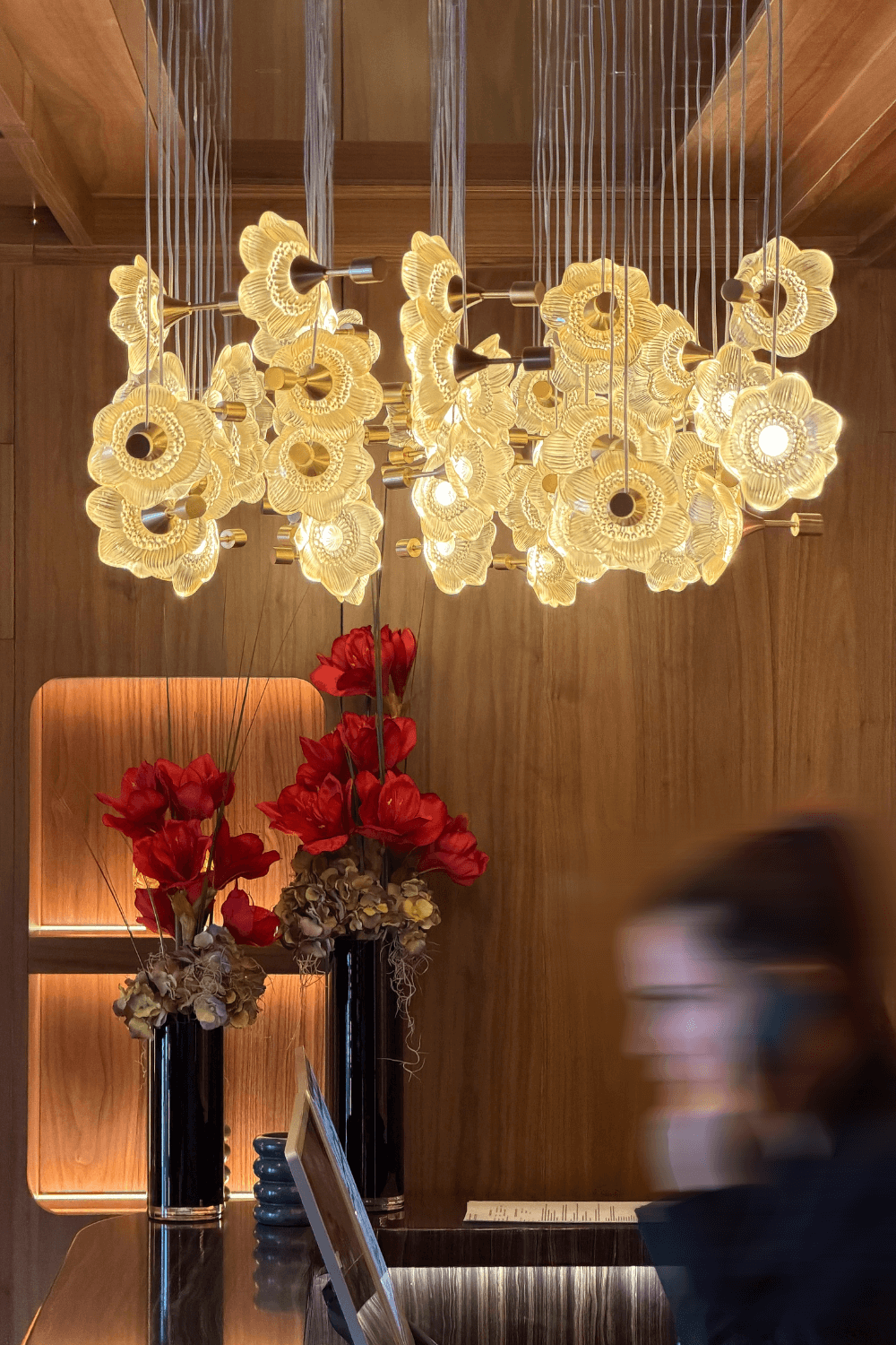 Lalique’s artistic signature is revealed from the lobby onward. The eye is immediately drawn to a chandelier composed of sixty anemones in gold-lustre crystal. Suspended in delicate balance, these flowers form an airy, luminous bouquet that embodies the poetic universe of the Maya Hotel Courchevel 1850.