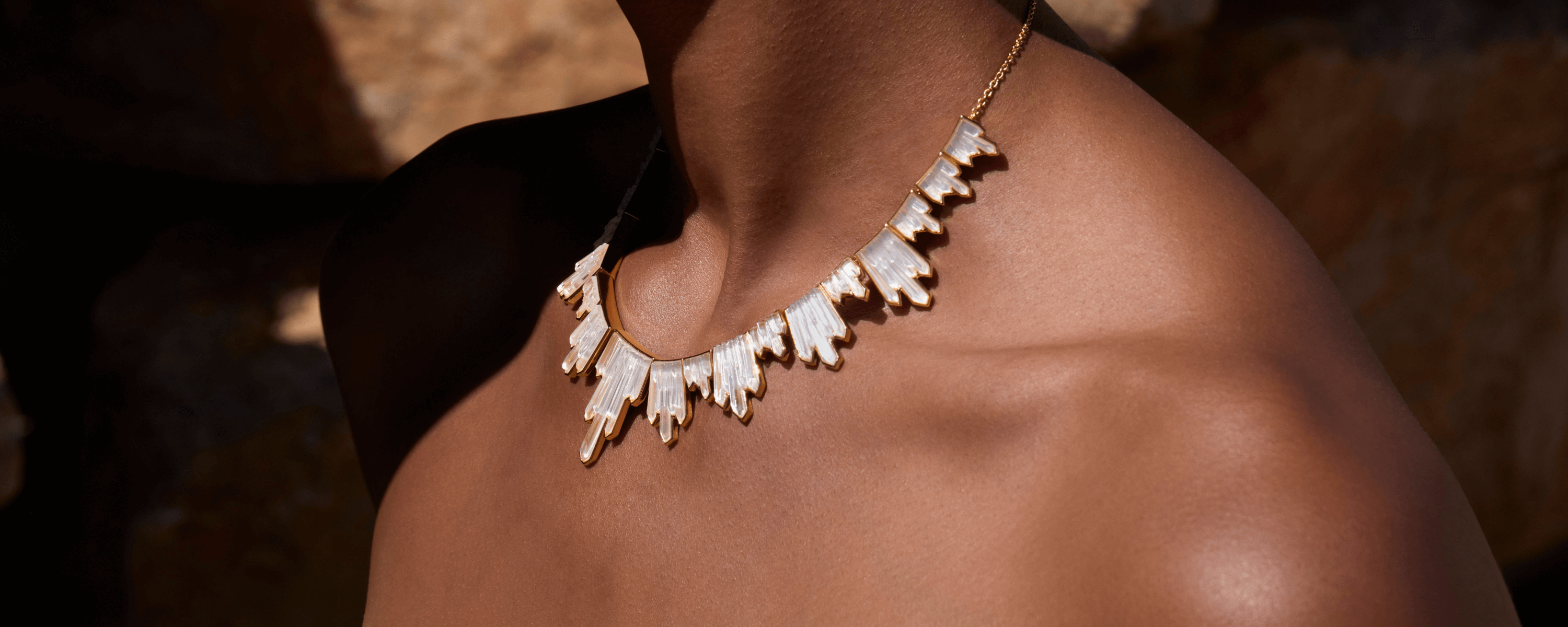 The Terramineral jewellery collection showcases three finely sculpted and chiseled crystal cuts, forming varied and elegant patterns, inspired by the organic beauty of nature.