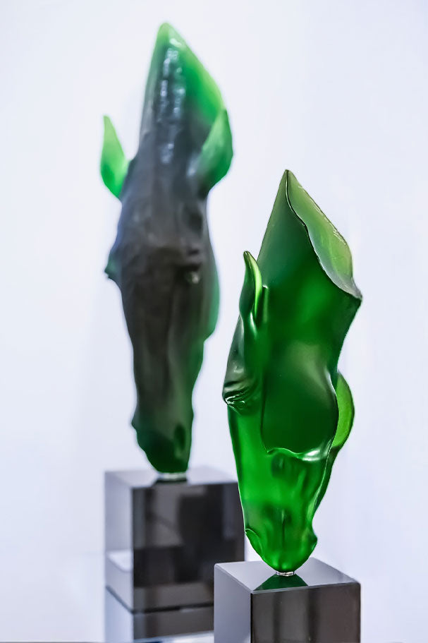 Born in 1963, British artist Nic Fiddian-Green grew up in rural Hampshire and has been whispering in the ear of man’s oldest friend throughout a career spanning more than 35 years. In the calm of his studio, with its sweeping views over the Surrey countryside in which he settled in the 1990s, he sculpts this noble beast for several hours a day, striving to encapsulate its strength and majesty on a monumental scale. A peerless draughtsman and sculptor, Fiddian-Green specializes in equestrian sculpture in realist style. He is trained in the challenging lost-wax technique, creating plaster moulds in his studio in Surrey and casting monumental pieces in his own foundry. It is here that Nic Fiddian-Green experiments with a palette of materials such as bronze, but also others including lead, marble, copper and natural stone. Working with crystal is a first for him.