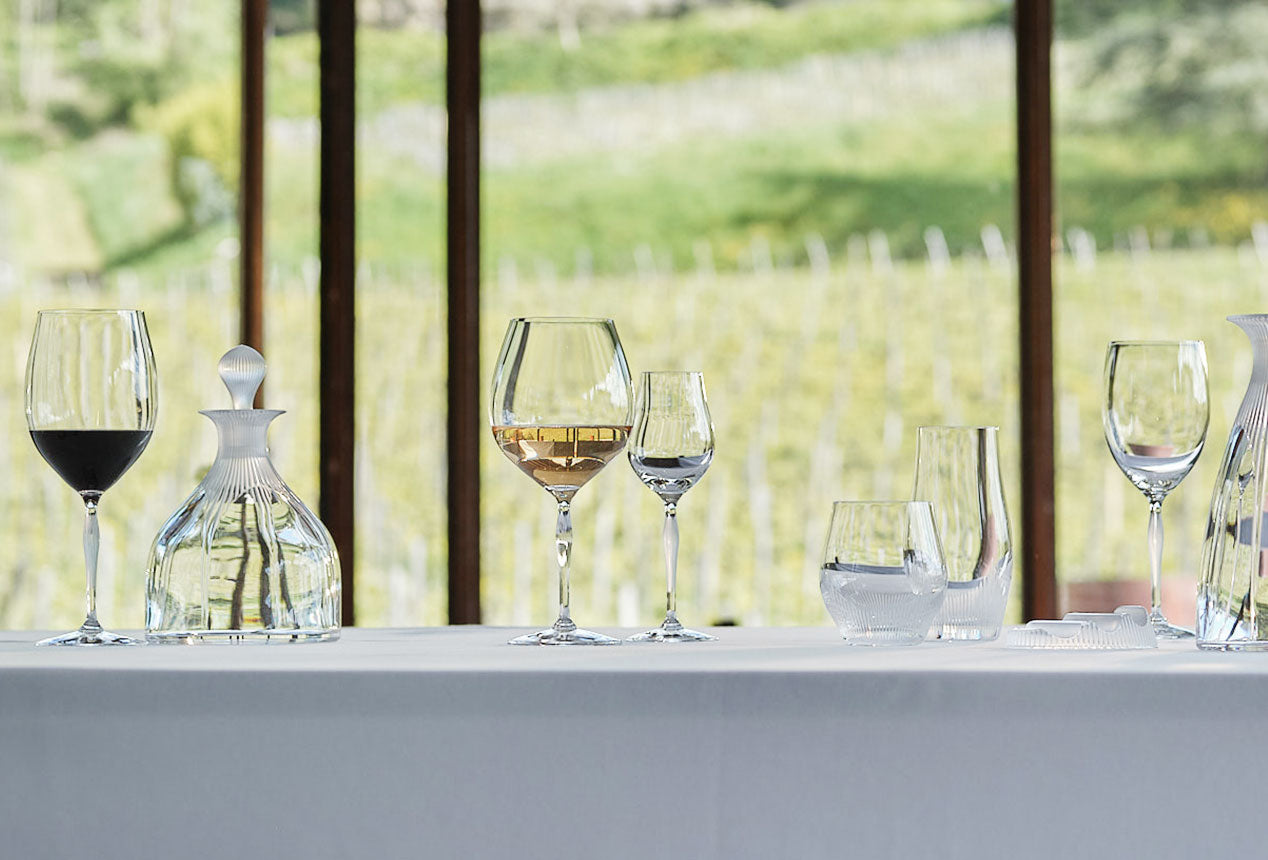 The “Wingen” barware service is named after the village in Alsace where the Lalique Manufacture has been perpetuating its exceptional know-how. The graphic lines in satin-finished crystal exhibit a timeless elegance.