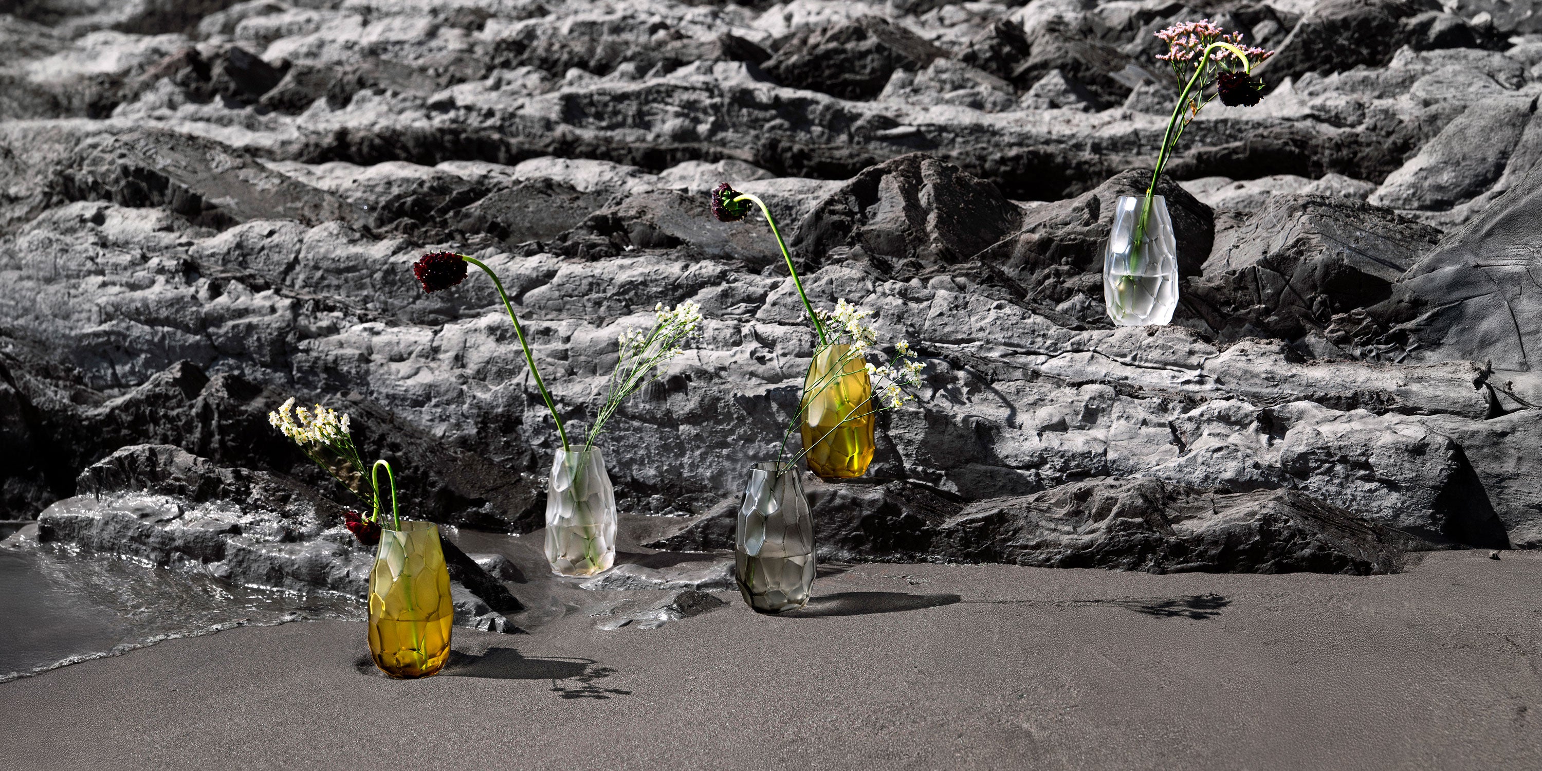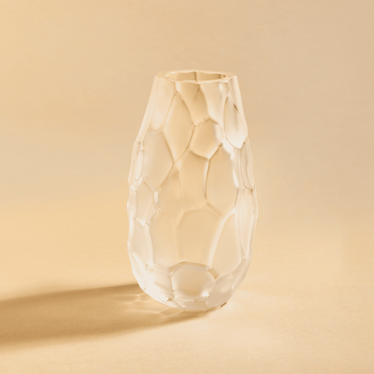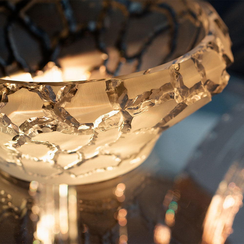 Thanks to masterful craftsmanship, the vases and bowls reveal an unpredictable and tactile geometry — each facet paying tribute to the living Earth.