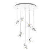 The bird heralding spring comes in a chandelier made up of 7 delicate pendant lights, for a poetic flight. The pairs of swallows with finely carved wings are juxtaposed in perfect harmony, invading the space with lightness and poetry.