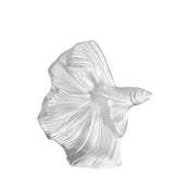 The Lalique Fighting Fish is sculpted through highlights of crystal, playing on reflections and transparencies. Native to Southeast Asia, these warlike fish can engage in lethal battles of violent beauty. Its plentiful fins undulate and intertwine like coloured veils in a spectacular aquatic ballet.