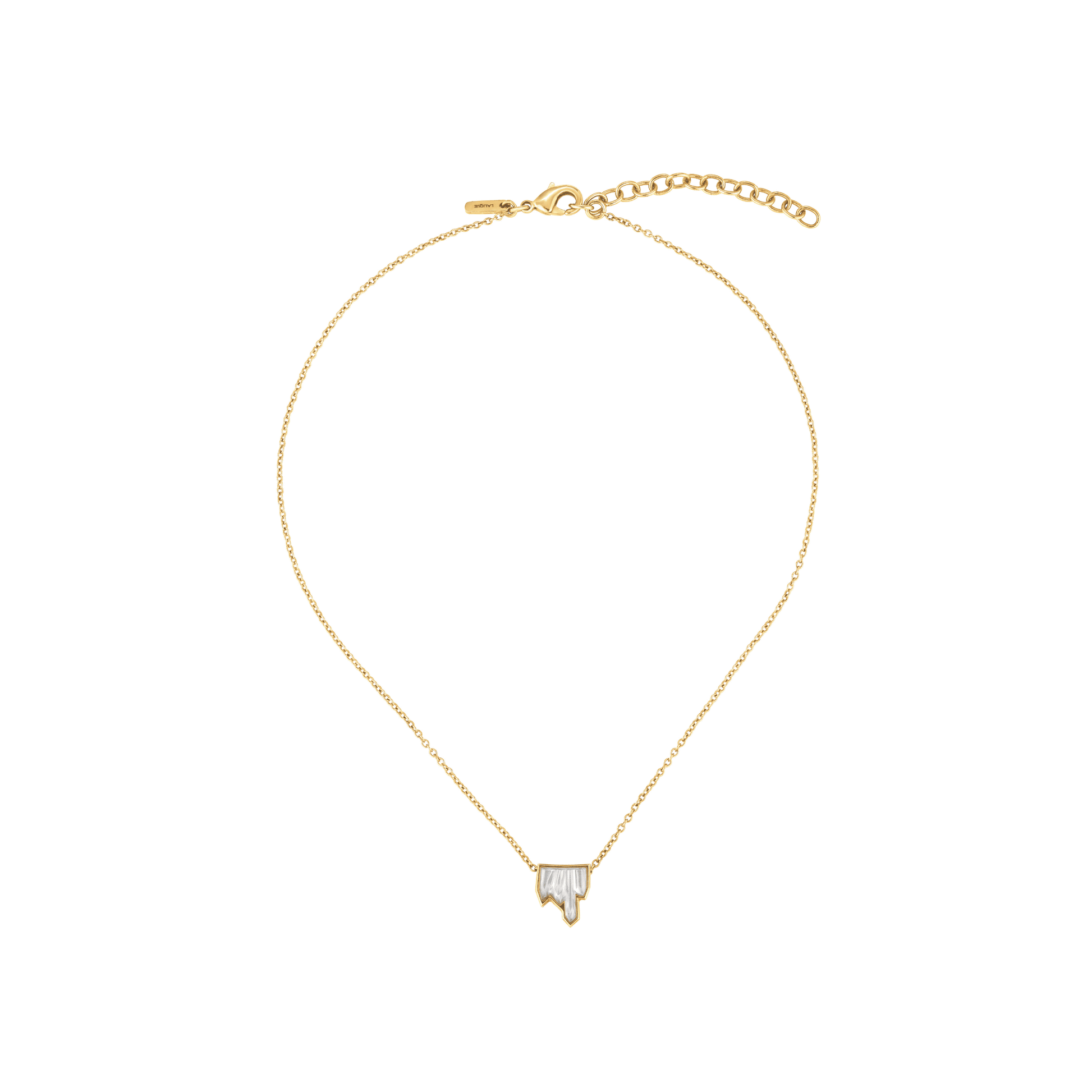 Delicate and radiant, this necklace reveals a subtle crystal at the end of a fine chain, like a touch of light resting on the skin. Lalique drew inspiration from minerals shaped by centuries to recreate their natural beauty in the Terramineral collection. A manufacturing feat, the fine metal frame perfectly embraces the delicately chiseled contours of the crystal, revealing its detailed reliefs.